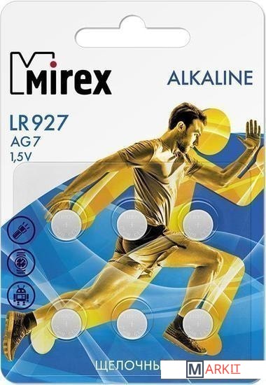 Markit » Батарейки, аккумуляторы, зарядные » Батарейка Mirex LR927 (AG7) блистер 6 шт. 23702-LR927-E6