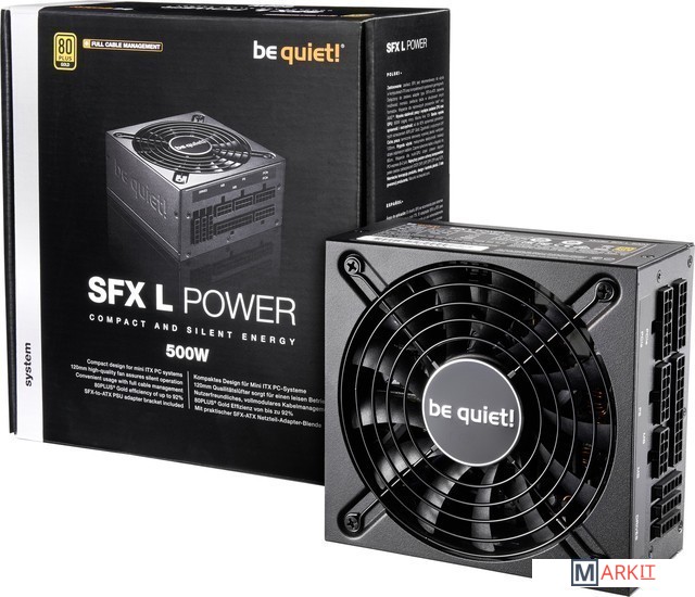 be quiet! SFX L Power 500W рекомендован для mini ITX и компактных игровых систем. Он выделяется среди подобных устройств отличным сочетанием тишины, характеристик, надежности и эффективности.Сертификация 80 PLUS® Gold с эффективностью до 92%Четыре разъема PCI Express для систем с несколькими видеокартамиСтабильная работа благодаря технологии LLC, Synchronous Rectifier (SR) и DC-to-DCМодульная система кабелей для максимальной совместимостиВысококачественный 120мм вентилятор с регулировкой скорости в зависимости от температурыКронштейн-адаптер SFX-to-ATX поддерживает использование блока питания с большинством корпусов