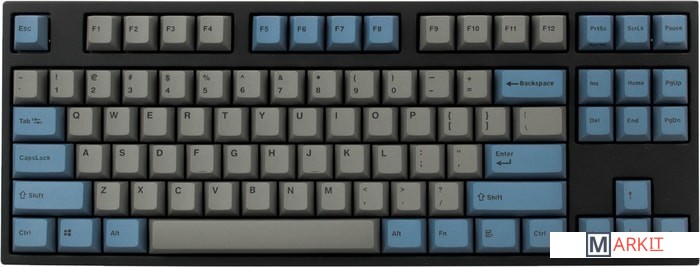 КЛАВИАТУРА БЕЗ КИРИЛЛИЦЫТип: линейныйСила нажатия: 60 грамм (тяжелые)Длина пути: 4 мм (2 мм до срабатывания)Данная модель выполнена в сочетании пурпурно-фиолетового, серого и чёрного цветов, расцветка обязательно понравится любителям сочных, но приглушённых красок. Клавиатура собрана добротно и монолитно, а сочетание высококачественных double-shot PBT клавиш с переключателями Cherry MX и звукопоглощающей подложкой позволяет сделать печать на клавиатуре максимально тихой (насколько это возможно для механики). Mini-USB порт спрятан в центре под корпусом, а на самой клавиатуре имеются центральная и две боковые канавки под кабель.Клавиатура поддерживает сочетание клавиш для регулировки громкости и управления музыкой, также имеется возможность переключения между 6KRO и NKRO.DIP-переключатели на задней панелиДают возможность поменять местами функции кнопок Ctrl и Caps Lock, Windows и Alt, Windows и Fn или отключить Windows.Звукопоглощающая подложкаПоглощает звуки при нажатии, делая процесс печати более тихим по сравнению с обычными механическими клавиатурами.Низкопрофильные клавиши Step-Sculpture2Данные клавиши заметно ниже и имеют оптимальный угол наклона, из-за чего, по отзывам, печатать приятнее и комфортнее, чем на более высоких клавишах.Клавиатура совместима с Mac OSFN-слой работает (кроме клавиш F6, F8, F9), а поменять местами клавиши-модификаторы можно в системных настройках. Проверено с MAC OS 10.13Функция Full N-key Rollover по USB (NKRO)Позволяет нажимать одновременно неограниченное количество клавиш. Для печати идеально подойдет как 6KRO, так и NKRO, независимо от вашей скорости. Для игр NKRO будет плюсом и неважно, нажимаете ли вы больше 6 кнопок или нет, поскольку, играя в любую игру, вы можете случайно нажать пару лишних клавиш и из-за этого клавиатура имеет шанс не среагировать на нажатие, которое вы хотели совершить изначально. Имеется возможность переключения между NKRO и 6KRO через FN сочетания.