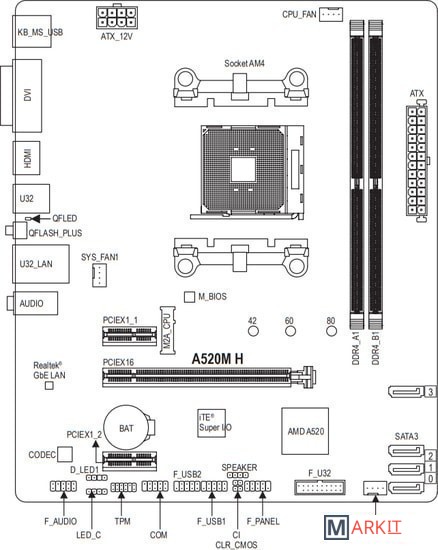 Markit » Материнские платы » Материнская плата Gigabyte A520M H (rev. 1.x)