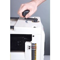 Легкий и компактный рейсмусовый станок Jet JWP-12 предназначен для индивидуального использования в столярных мастерских и «на выезде» в условиях стройки. Благодаря коллекторному мотору он весит всего 30 кг, обладая при этом мощностью 1,8 кВт. Двигатели этого типа требовательны к соблюдению температурного режима, поэтому JWP-12 оснащен датчиком перегрева, отключающим питание, когда нужен перерыв на охлаждение.